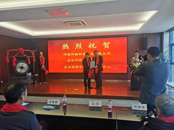 熱烈祝賀澠池仰韶科技公司成功掛牌中原股權交易中心
